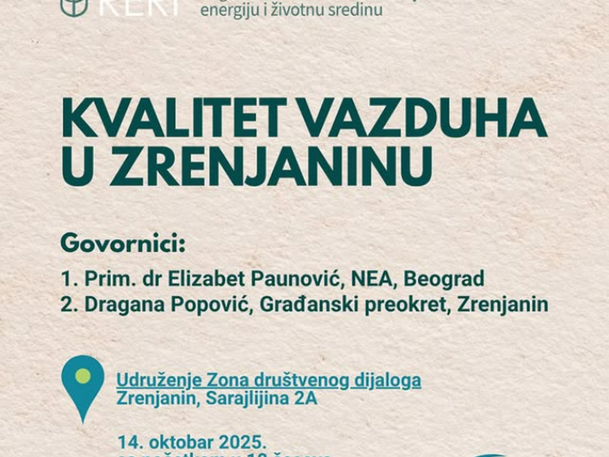 Na sinoć održanoj javnoj diskusiji o kvalitetu vazduha u Zrenjaninu, koju je organizovao Regulatorni institut za obnovljivu energiju i životnu